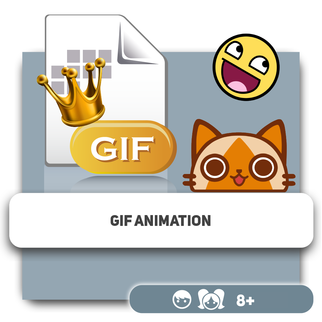 Animated GIFs are moving pictures. The most common animation format on the Internet is GIF. Students study the concepts of animation, file extensions and how to create animated GIFs for social networks and mobile devices.