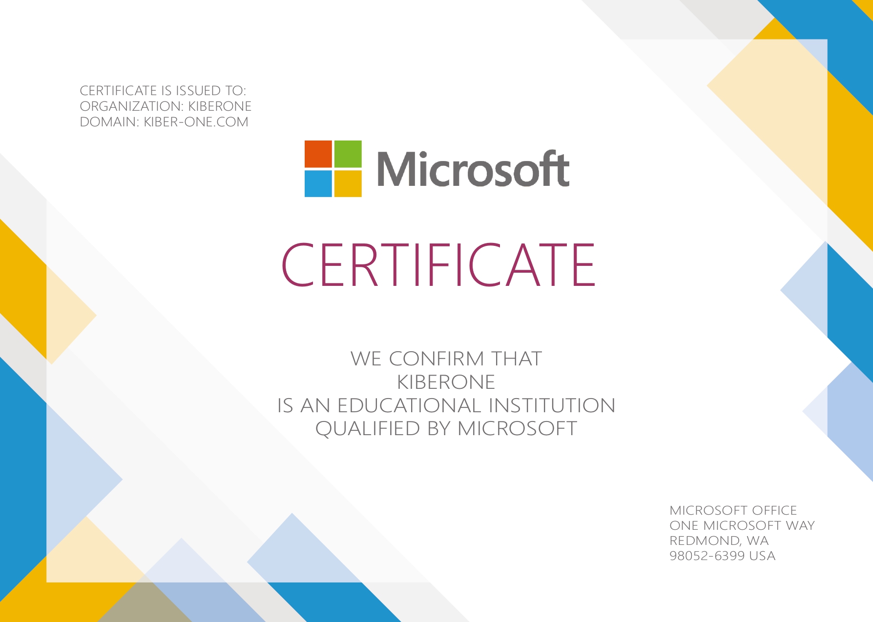 KIBERone is an educational institution qualified by Microsoft.